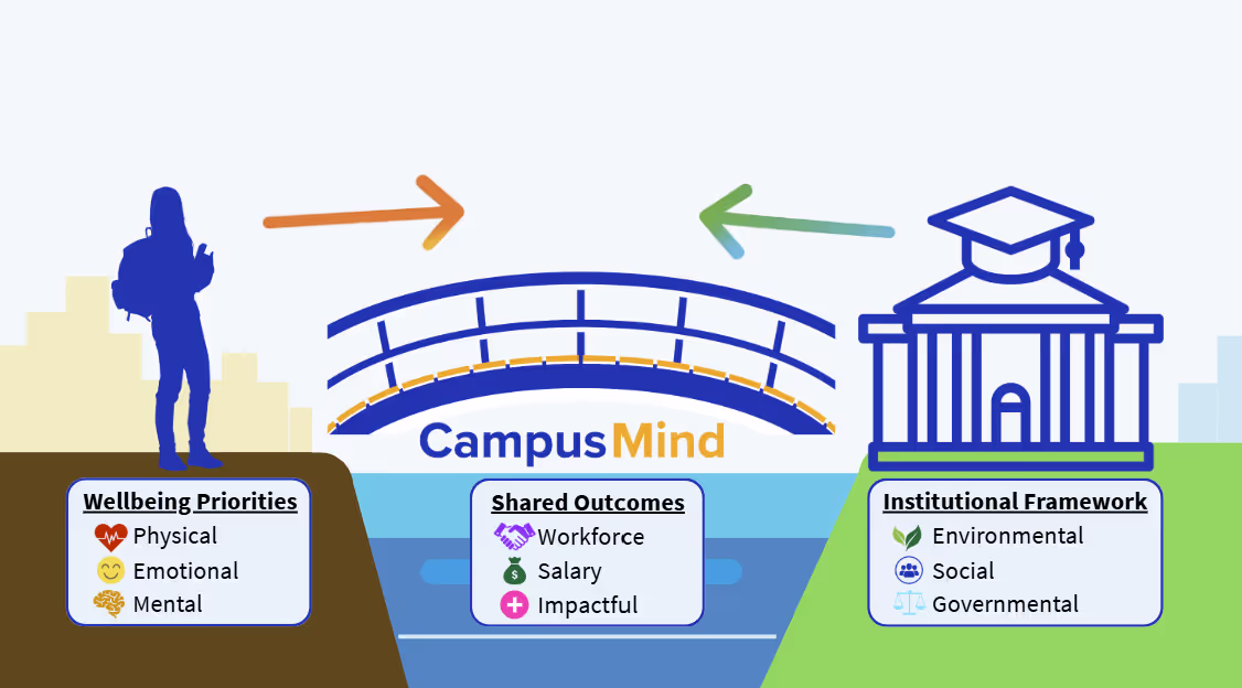 This is the 10,000-foot view of our platform: connecting human-level wellness with institution-level accountability, creating new shared metrics for higher education.
